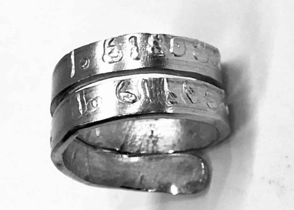 MFadas bague phylactère - sel, soufre, mercure (symboles alchimiques)