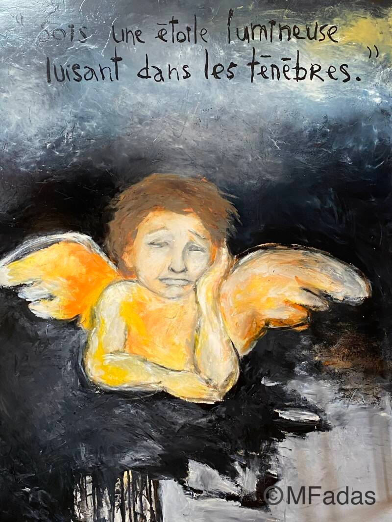 MFadas sois un étoile lumineuse dans les ténèbres série des anges gardiens 116x89cm technique mixte sur toile 2005