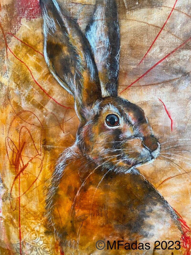 MFadas le lièvre alchimique 81x65cm technique mixte sur toile 2022