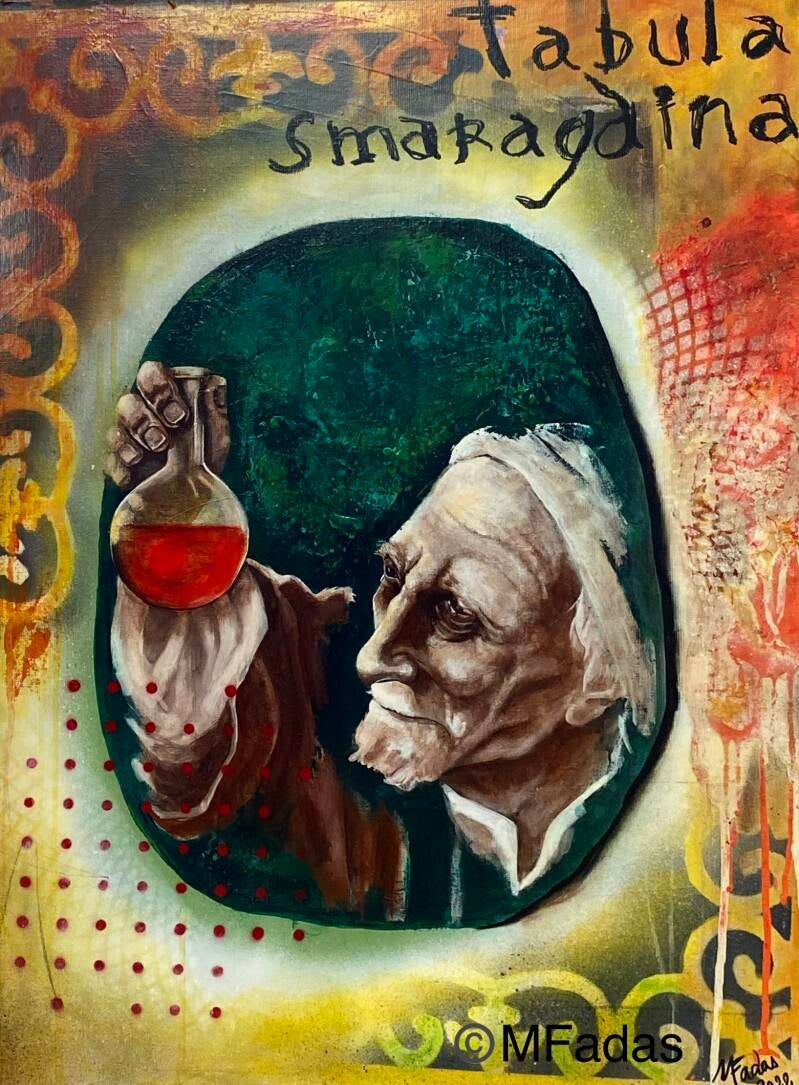 MFadas tabula smaragdina (la table d'émeraude) 81x65cm technique mixte sur toile 2022