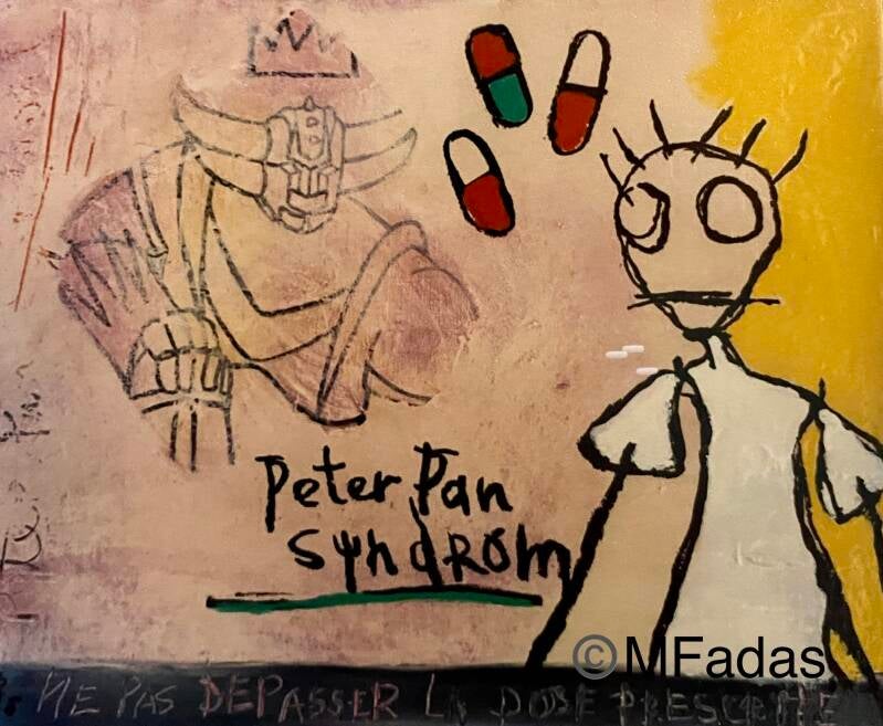 MFadas peter pan syndrom 41x33cm technique mixte sur toile 1999