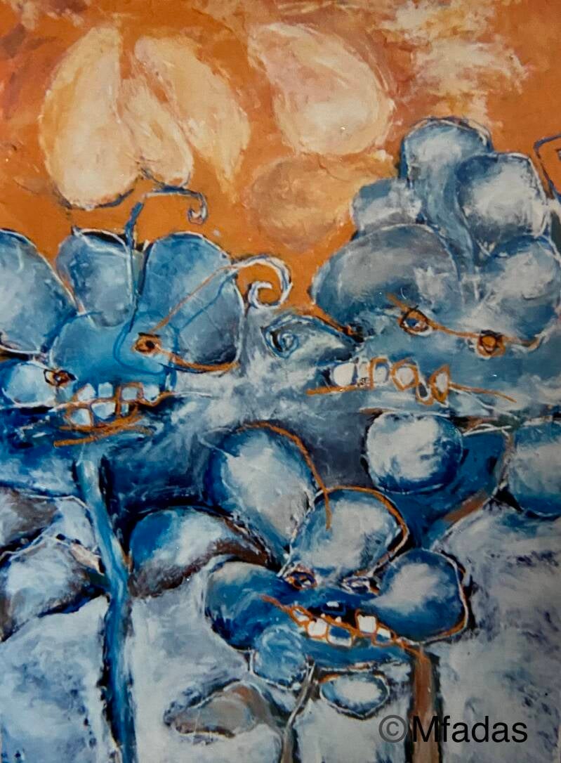 MFadas marguerite série plantes carnivores 116x89cm technique mixte sur toile 2006